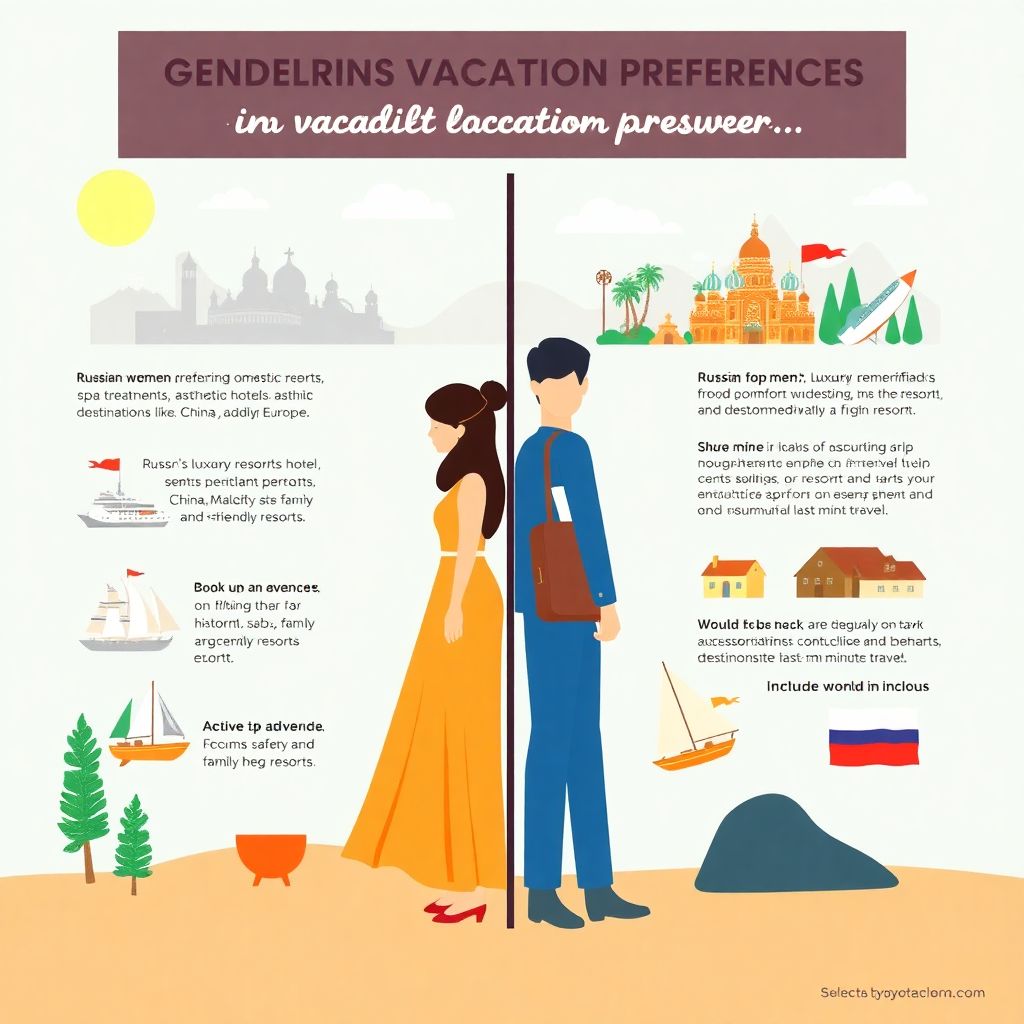 Кроме стоимости и направления, различаются и мотивации при выборе отдыха. Женщины, как правило, ориентируются на комфорт, безопасность и возможность расслабиться в спокойной обстановке. Им важны спа-процедуры, эстетика отеля, наличие гастрономических туров и аутентичного клиентского сервиса. Мужчины чаще выбирают активные виды отдыха, включая поездки с насыщенной экскурсионной программой, рыбалку, морские круизы, горнолыжные курорты и другие формы активного досуга.