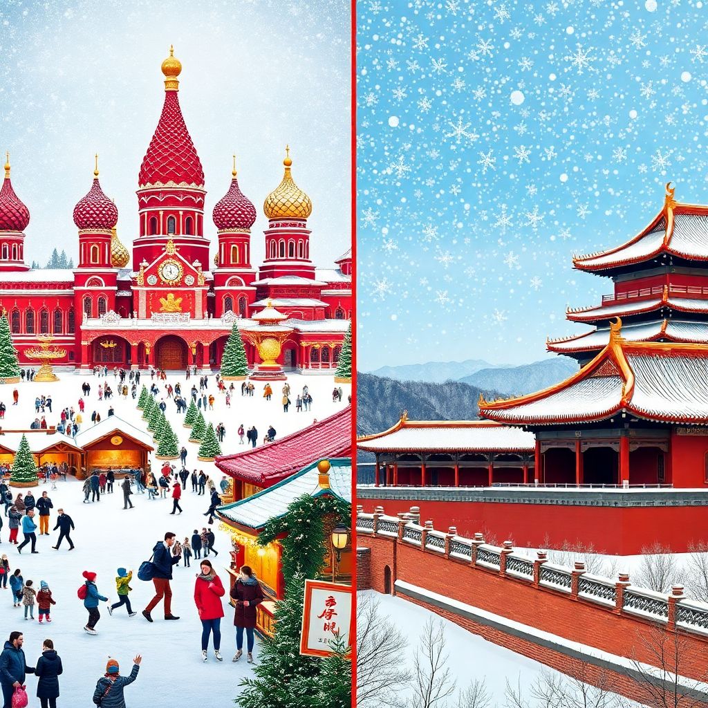 2. Культурная программа. В Пекине туристов ждут древние храмы, Великая китайская стена, зимние фестивали и новогодний антураж Восточной Азии. Москва же порадует традиционной русской атмосферой: ёлки на Манежной площади, катки на ВДНХ, рождественские ярмарки и театральные представления.